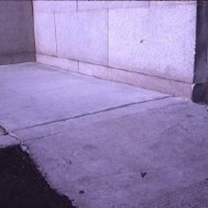 View of the Downtown Plaza on K Street also known as the K Street Mall. This view shows the paving sinking because the earth below is settling.
