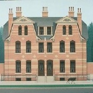 Oil painting of a brick house by artist, Robert Pengelly. Shown at the Anya Horvath Gallery (4399 Arden Way, Sacramento).