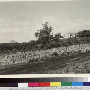 A very young desert garden with the southeast corner of the Huntington residence in the distance. The label that accompanies this photo in the album reads "General view 1914."