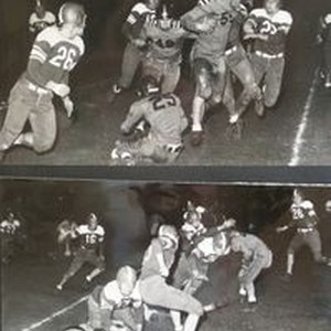 Photo--black and white: Analy High School Tigers football team of fall 1950. Four photos of the Analy Tigers vs Santa Rosa, Friday November 9th, 1950. Analy 19--Santa Rosa 6.