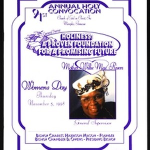Women's day program, "Holiness: a proven foundation for a promising future", 91st Annual Holy Convocation of the Church of God in Christ, Memphis, Tennessee, 1998 November 5. [Description English/roman)]