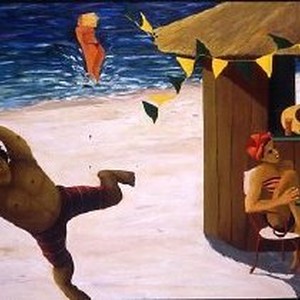 Acrylic painting of a beach scene entitled "Cariocas," by artist Michelle Echenique from Berkeley.