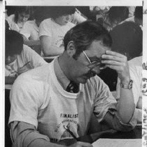 Phillip Isenberg (Sacramento City Council, 1971 - 1974; Sacramento Mayor, 1975 -1982; California Assemblymember, 1982 - 1996; known for expertise in land use, redevelopment, environmental, fiscal and healthcare issues). Caption: Mayor Phil Isenberg struggles through 6th grade math test at the 10th annual All-City Math Contest on the K-Street Mall. He missed 20 out of 35 questions.