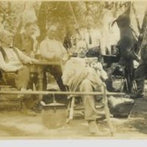 Photo -black and white: The Sullivan brothers hunting at Trosper Lodge in Cazadero, CA. L to R: Wesley, Asa, Jim, Charlie, Ben in front and Neal Sullivan. Frances Drake TROSPER 24 Mar 1866--24 Apr 1923. Trosper was the Resort Owner and a Justice of the Peace. Trosper built and operated the Trosper Lodge resort in Cazadero, California also known as the Trosper House.