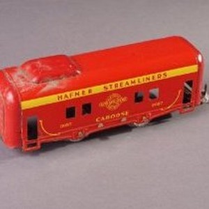 Hafner Streamliners toy metal caboose train car No. 3057; red and yellow.