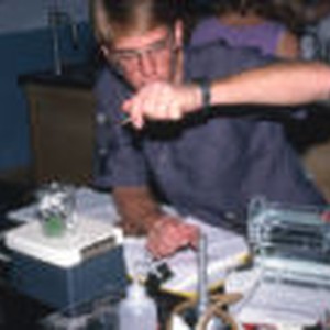 A student examining the substance in the test tube.