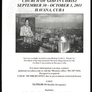 Invitational flier for the 1st Cuban Holy Convocation, Church of God in Christ, Havana, Cuba, 2011 September 30 - October 3. [Description English/roman)]