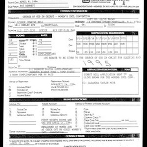 Rooms contract, Best Western Memphis Airport Hotel, 1994 April 8. For 153 rooms for the Church of God in Christ Women's International Convention on 1995 May 14-21. [Description English/roman)]