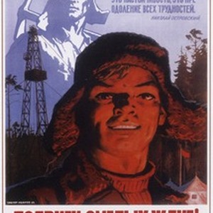 Soviet social poster. Caption reads, "Podvigi smelyh zhdut! / Подвиги смелых ждут!", meaning, "Exploits await the braves!". The poster includes a quotation from Nikolai Ostrovkii, a Soviet writer, "Deviz nashei molodezhi -- eto muzhestvo, eto uporstvo, eto nastoichivost', eto preodolenie vsekh trudnostei / Девиз нашей молодёжи -- это мужество, это упорство, это настойчивость, это преодоление всех трудностей ". [Description English/roman)]