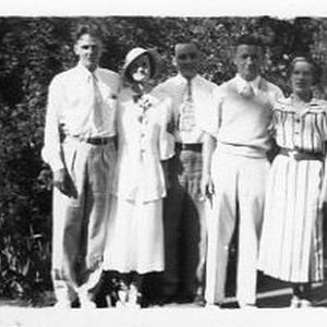 Snapshot of James Benton and Faye French Tulley on the left and John and Ida Crump on the right. The man in the center is unidentified.