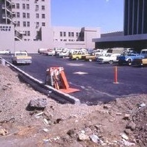 Views of the Holiday Inn Hotel downtown under construction at 4th and 5th Streets on K Street. This shows the bridge from the hotel to Parking Lot G