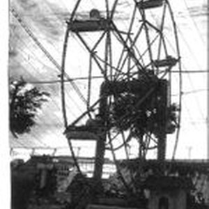 Postcard--photo--black and white: Sebastopol's Gravenstein Apple Show display of a Ferris Wheel made of apples, 1912.