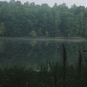 Cardinalflower in the foreground of a scene at Cub Creek Lake in Natchez Trace State Park, Tennessee.