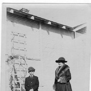 Otto and Antoinette pose beside a building.
