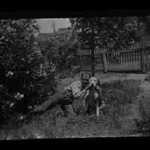 View of Joseph Shaw residence at 530 2nd St. Washington, Yolo County, California. View shows a young boy with a dog. Possibly the photographer's family home.