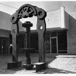 New center: The strange-looking object in the foreground is a kind of steel sculpture devised from parts of an old gold dredge by Al Silk, Sacramento land developer