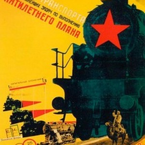 A poster dedicated to development of the Soviet transportation system. Captions read, "Razvitie transporta -- odna iz vazhneishikh zadach po vypolneniu piatiletnego plana / Развитие транспорта — одна из важнейших задач по выполнению пятилетнего плана", meaning, "Development of the transportation system is one of the most important tasks of the five-year development plan". [Description English/roman)]