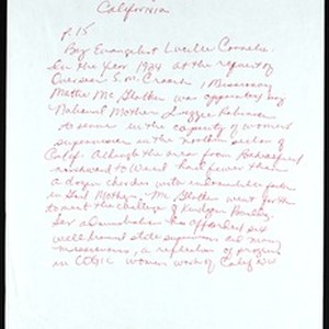 "COGIC: 50 years of progress in California", notes for a lecture, 1984? [Description English/roman)]