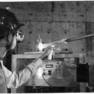 Dr. John Asmus aims the laser beam used to reveal the original dome design on the walls of the California State Capitol building.