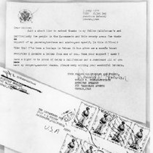 Letter and envelope from hostage Sgt. Don Hohman (Army medic), who was from West Sacramento, to Sacramento Bee, thanking local people for their support; Iranian Hostage Crisis. There are also photographs of letter alone and envelope alone.