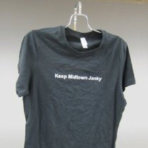 Cotton women's size large black t-shirt. "Keep Midtown Janky"