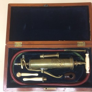 Scope/Content: 19th-century clyster syringe and aspirator in case; device used for administering enemas; Joseph Gray & Son Truss Works Sheffield.