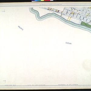 WPA Land use survey map for the City of Los Angeles, book 10 (Shoestring Addition to San Pedro District), sheet 32. Includes: [Title page and] legend [for Book] no. X Composite index to Land use map books [for Book 10] Index to Book no. 10. Land use survey - City of Los Angeles. Department of City Planning. These maps were prepared with the assistance of the Works Progress Administration project no. 665-07-G-226 through 1939 to 1940. The land use data contained herein was compiled from a survey made with the assistance of the Civil Works Administration project no. 642, State Emergency Relief Administration project nos. 1-F2-318 and 1-F2-318A and Works Progress Administration project nos. 65-3-4377, 1101-2011 and 465-03-3-106. This survey functioned from Dec. 18, 1933 to May 8, 1939 and covers approximately 460 square miles within the boundary of the City of Los Angeles. It includes 347 colored drawings bound in 10 volumes of which this is no. X. The land use survey was supervised by the Zoning Engineer. The land use maps were supervised by the Illustrative Planning Engineer for the Sponsoring Department.