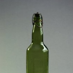 A plain, green glass whiskey bottle. The original rubber and wire bale cap is intact. No bottler's label or mark.
