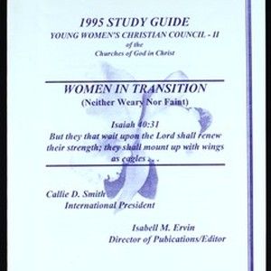 Isabell M. Ervin, editor. Women in transition (neither weary nor faint): 1995 study guide, Young Women's Christian Council II (YWCC-II) of the Churches of God in Christ. Wichita, Kansas, [s.d.] [Description English/roman)]