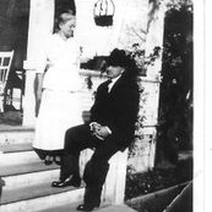 Photo--black and white: Mr. And Mrs. Chester Myers on the steps of a house--probably the house of their son Chester R. Myers in Sebastopol.