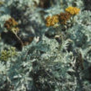 Dark orange flowers with frosted green leaves on the cliffs south of Wilson Cove. Slide mount refences Eriophyllum nevinii.