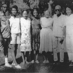 At a family gathering in Tulare, CA, in the 1940s, the following members of the Greenway family gathered for a family photo. Left to right: Frank, Jr., Kathryn, Stella, Dorothy, mother Bertha, father Frank, and Frances. (Photo courtesy of Stella Woods)