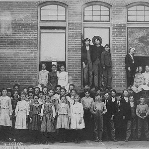 These students attended the Morton Street School in Porterville, CA, in 1904. The white spots by the windows are where the blackboards erasers were cleaned by pounding on the bricks. The school was torn down in 1938 when a road was extended. (Photo courtesy of Porterville Library)