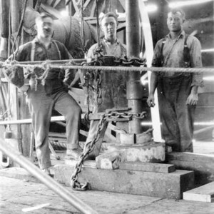 Workers pose in the steam production plant used for operating oil wells in Coalinga, CA, ca 1910. (Photo courtesy of Steve Worthley)