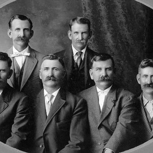 These six Montgomery brothers arrived in Exeter, CA, in the 1880s. From the left, they are Thomas G., James C., William A., Andy L., Frank S., and Alexander. The photo date is thought to be ca 1915. All were involved in agriculture in Exeter. (Photo courtesy of Mrs. Don Montgomery)