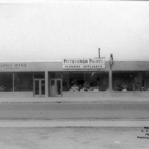 The U. S. Post Office and Ivanhoe Appliance Store were located on Road 159 in Ivanhoe, CA, in the 1940s. (Photo courtesy of Jerry Hobbs)