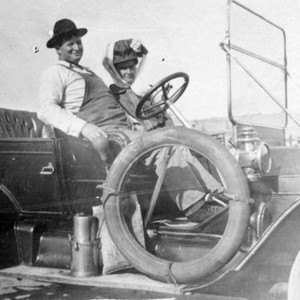 Al Worthley and Maggie Worthley Neph show off a fine automobile in Coalinga, CA, about 1910. (Photo courtesy of Steve Worthley)