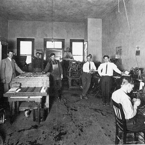This is the staff and the office of the weekly Exeter Tribune newspaper in Exeter, CA. (Photo courtesy of Pat Ropes)
