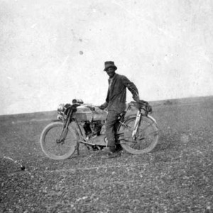 Jim Hensley of Tulare County, CA, poses on his motorcycle, thought to be a Harley Davidson. (Photo courtesy of Debra Harrell)