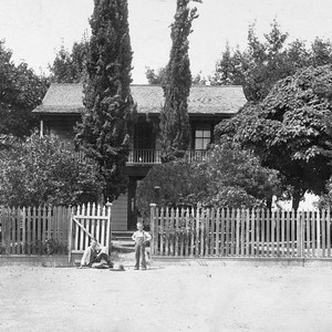 This home, owned in 1913 by F. L. Jacobson, was built in 1887 on Road 140 about eight miles north of Visalia, CA. The original owner was Ben Hicks, who homesteaded the land. Pictured here are Arden Jacobson and Fred Jacobson. (Photo courtesy of Maureen Anderson)