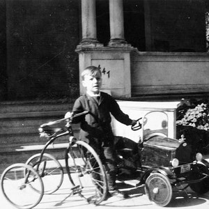 "John Weston Dudley poses with his ""vehicles"" at his home at 447 South Garden Street in Visalia, CA. (Photo courtesy of Sally Baker Dudley)"