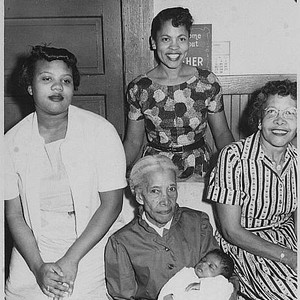 Mother Irene Jackson, Grandmother Stella Woods, Great Grandmother Jones, and Great-Great Grandmother ? Pose with Baby Anthony Jackson in Tulare, CA, in the late 1940s. (Photo courtesy of Stella Woods)