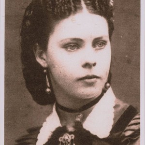 Copy of a sepia-toned photograph of a woman wearing drop earrings and a dark choker. The back of the photograph identifies the woman as Julia Stoddard Lord. If you know any details from this image please contact the Rancho Cucamonga Public Library at (909) 477-2720 or reference@cityofrc.us