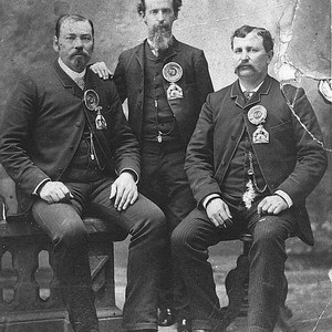 In the center of this 1880 portrait is Dr. Samuel Gregg George of Porterville, CA, after whom the local chapter of the El Clampus Vitus was named. This photo was taken at a convention he attended. (Photo courtesy of Porterville Library)