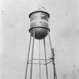 This photo shows the water tower in the city of Strathmore, CA, during the 1930s. (Photo courtesy of Nancy Baird)