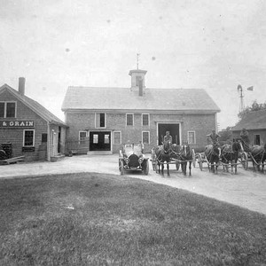 Flour and grain were the primary commodities sold at this location in Tulare, CA, in the early 1920s. Horses and wagons still were used extensively.