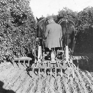 Edwin Gibson Wallace, maternal grandfather of the photo donor, was cultivating this orange orchard near Exeter, CA in 1915. (Photo courtesy of Maurine Hamilton)