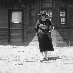 Riley Simpson, nee Melidonian, poses in front of the Cutler, CA, railroad station ca 1920. (Photo courtesy of Lucinne Bennett)