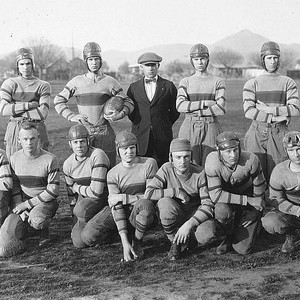 John Bohland is second from right in this photo of the fierce looking football team of Lindsay High School, Lindsay, CA, in 1921. (Photo courtesy of William P Bohland)