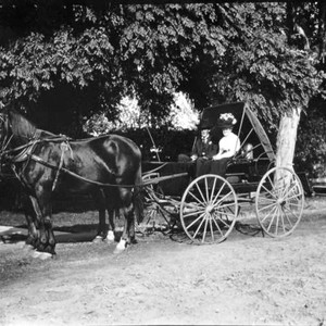 John R. Reed and his wife, Mary Ann Reed, pose in a horse-drawn buggy in front of their home in Orosi, CA, in 1910, Reed was a wheat farmer. (Photo courtesy of Munn Reed)